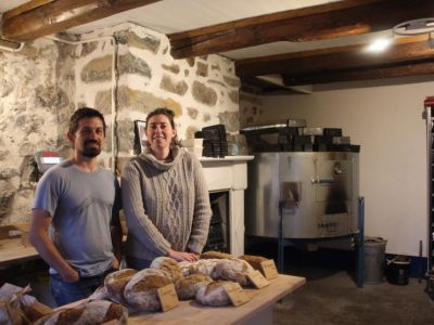 A 5 km, fabrication et vente de pain au levain pétri et cuit au four à bois.